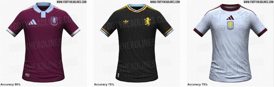 下赛季,阿斯顿维拉预计推出一款没有传统天蓝色插袖设计的纯酒红色球衣,领口设计与弗拉门戈和芝加哥火焰队相同。客场球衣预计为黑色,配以黄色、酒红色和天蓝色的领口细节及狮子队徽。第三球衣则为浅蓝色,饰有漩涡印花和居中队徽。